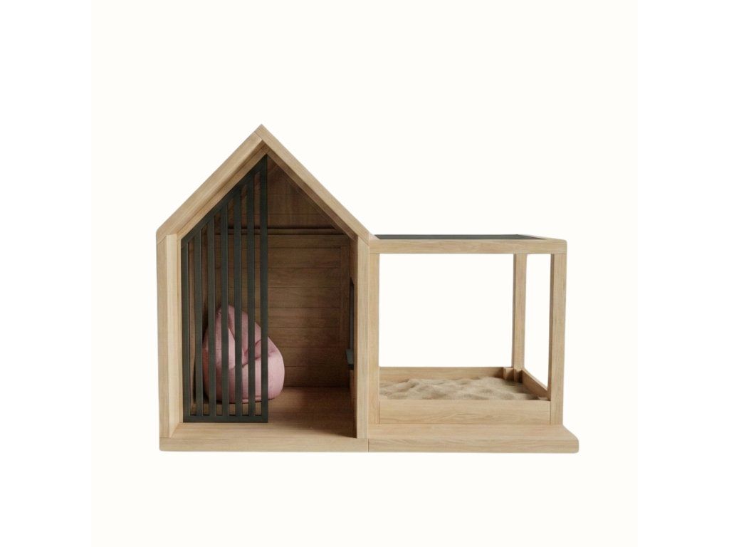 Uzavretá časť domčeka vytvára útulný priestor na oddych alebo pokojnejšiu hru. Vedľa nej sa nachádza otvorený modul, ktorý môže slúžiť ako pieskovisko alebo miesto na rôzne detské aktivity.