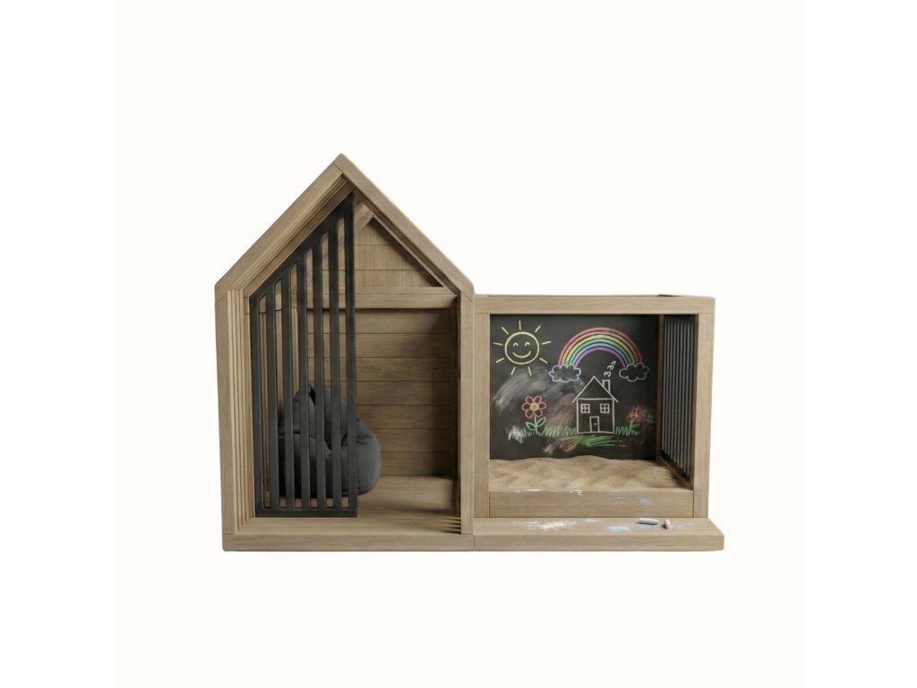 Uzavretá časť domčeka slúži ako malý úkryt alebo detská „izba“, zatiaľ čo otvorený modul poskytuje priestor na pieskovisko alebo ďalšie hry.