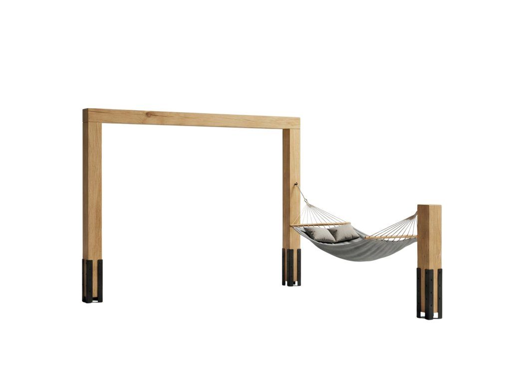 BLOCCO Frame 3 Hammock je minimalistický drevený rám s tromi nohami, vytvorený špeciálne pre zavesenie hojdacej siete. Ponúka stabilné a vizuálne čisté riešenie pre relax v záhrade, na terase alebo v exteriéri modernej architektúry.